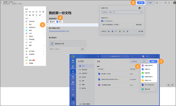 上传和导入:上传文件,存在飞书云端;导入已有的文件,转换为飞书云文档格式