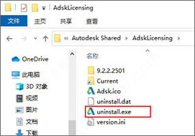 5、打开路径C:\Program Files (x86)\Common Files\Autodesk Shared\AdskLicensing,点击uninstall.exe把v10版本卸载;