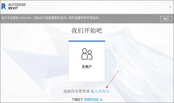 9、在桌面上打开Revit 2021,点击输入序列号;