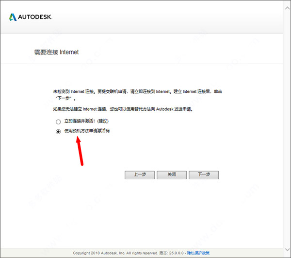 12、选择使用脱机方法申请激活码,点击下一步;