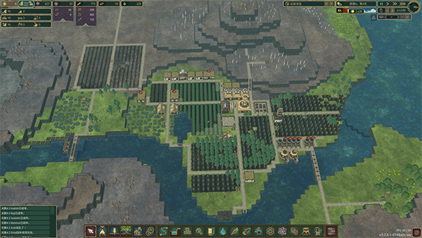 2、规划下个区域房子、林厂、农厂、抽水设备、建筑建造完成且第一波树木、粮食、水箱一桶满即可开新城