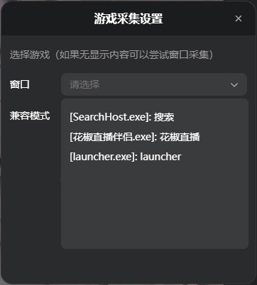 在设置面板的“窗口”下拉选项中找到游戏窗口的名称并点击选中(游戏窗口的名称可以在游戏窗的左上角看到,如兵临城下游戏窗口的名称是launcher,就可以在下拉选项中选择包含launcher的选项)