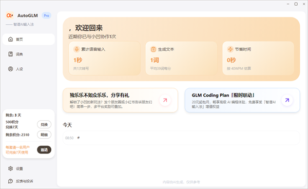 智谱AI输入法真的很好用,是一款基于GLM-ASR大模型的高效语音输入工具。它不仅识别准确率高,还能快速响应,直接通过快捷键就能开启语音输入模式,完全不用担心说错话,因为有强大的AI语音纠错功能保驾护航。最让我惊喜的是它的翻译功能,中英文切换毫无压力,而且支持方言和普通话混合输入,真的很方便。