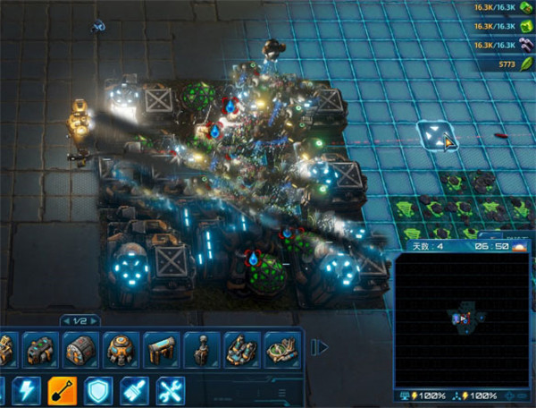 根据以上机制,所以这游戏完全没必要上来就处处设防,严丝合缝。开局资源和电力都很紧张,优先应该做的是把资源和电力投入到扩产能和攀科技里面去。你造太多的一级哨兵塔和围墙,其实大部分时候都没什么用。