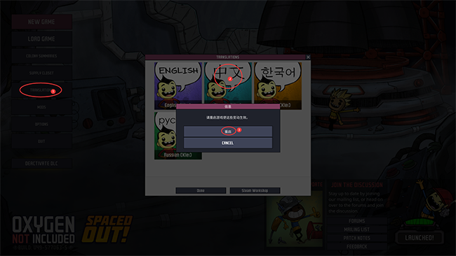 2、点击“TRANSLATIONS”→“中文”→“重启”