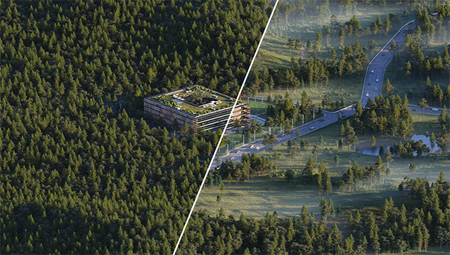 通过支持新增的Gaussian splats(高斯溅射)场景重建,您可以轻松将建筑置于场景环境中,创建并渲染具有精确反射和折射效果的复杂 3D 环境。