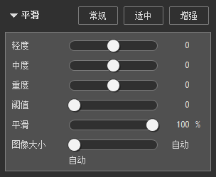 对于初学者来说,建议使用portraiture预先配置的三大预设,分别是常规、适中与增强。