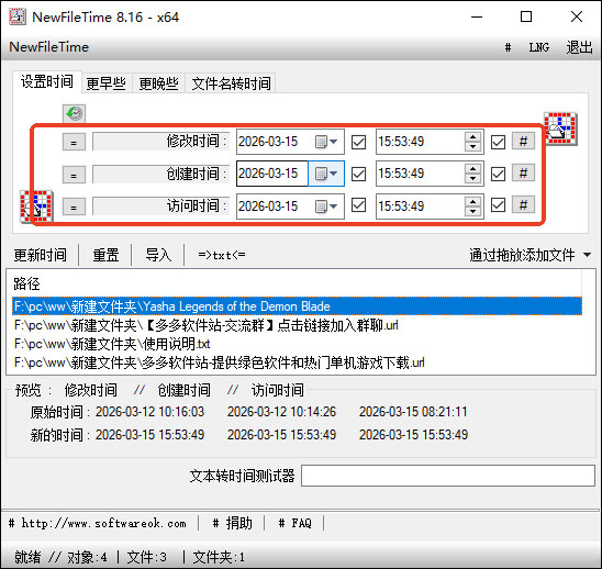 总的来说,NewFileTime不仅功能强大,还非常贴心,是我整理文件时的得力助手!