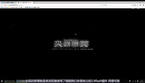 3、接着打开水狐浏览器,进入火线精英,就会启动flash,点击激活flash的文字