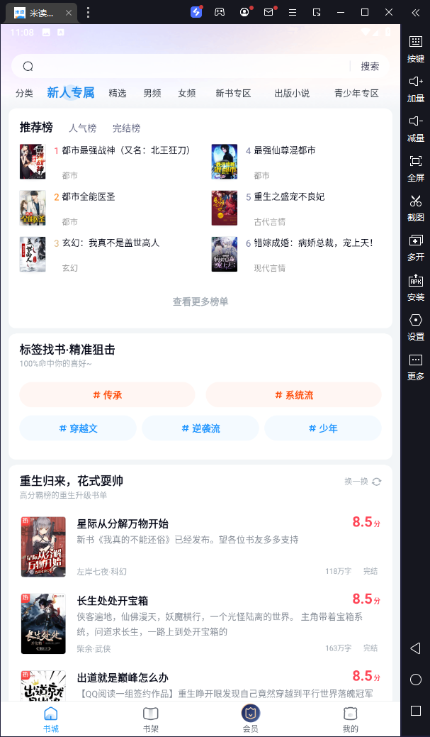 米读小说电脑版是一款基于安卓模拟器运行的免费阅读软件,里面有很多优质的小说资源,能满足大家各种各样的阅读需求。无论是玄幻仙侠、都市言情,还是悬疑推理、历史传记,这里都有你感兴趣的题材。软件界面设计得很舒服,字体大小和背景颜色都可以自己调,读起来很轻松。