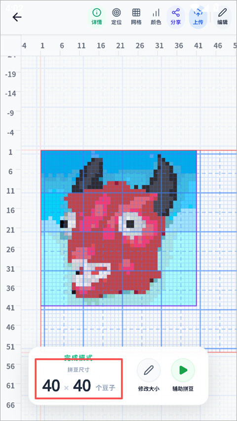 2、导入图片后,自动将普通照片转换成拼豆图纸,这里显示拼豆大小
