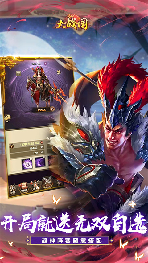 《大战国》是一款以三国历史为背景的策略卡牌放置手游,玩家可以招募赵云、张飞等经典角色,体验三国时期的战斗与策略。游戏上线时就送无双全免特权和自选礼包,新人玩家也能轻松享受大佬待遇。每天还有代金券和满星神将礼包免费领取,福利非常丰厚。
