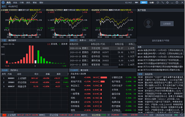安装这个软件很简单,直接下载exe文件安装就能用,不需要模拟器之类的麻烦操作。界面清晰,可以查看大盘指数、个股走势,还有各种板块和行情资讯。支持的功能特别多,比如一键打新、融资融券、场外基金等等,基本涵盖了股票投资的方方面面。