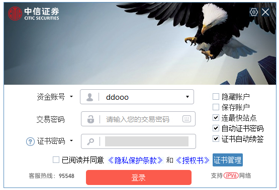 2、安装好中信证券独立下单软件后,再输入账号和密码登陆;