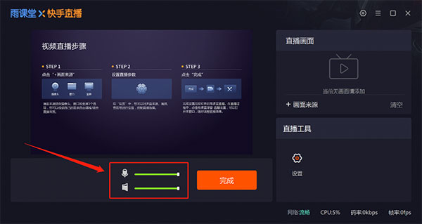 添加后点击【完成】,即完成直播设置,并正式开始直播(即课堂视频录制)。
