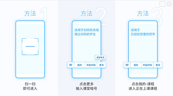 页面弹出二维码,学生通过以下三种方式进入课堂: