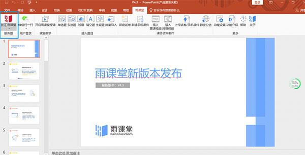 下载安装长江雨课堂。安装成功后,打开授课所用PPT,点击上方菜单栏【雨课堂】,然后点击子菜单【雨课堂】,下拉菜单中选择【长江雨课堂】。