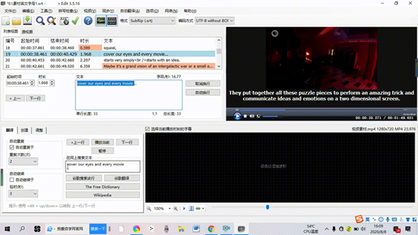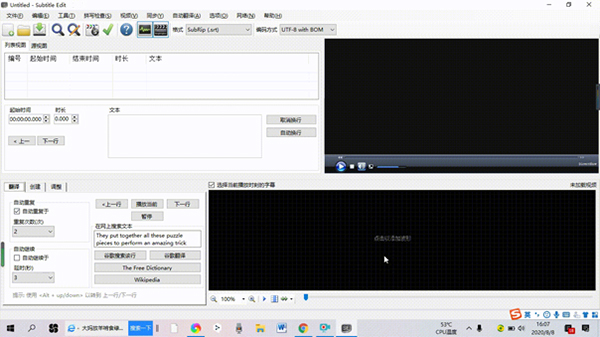 (2)在音频区内进行人工翻译时,用户可用借助该软件支持的词典、谷歌翻译、维基百科等工具对翻译工作进行辅助或直接在网上搜索对应的翻译或文本。