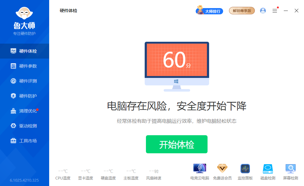 1、下载解压,得到鲁大师去广告版电脑版,双击exe文件打开软件,可以进行硬件体验;