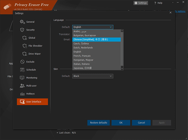 您可以将隐私橡皮擦设置为每次关闭浏览器时自动运行,也可以将其设置为在后台监控Windows系统,并检测何时清除。