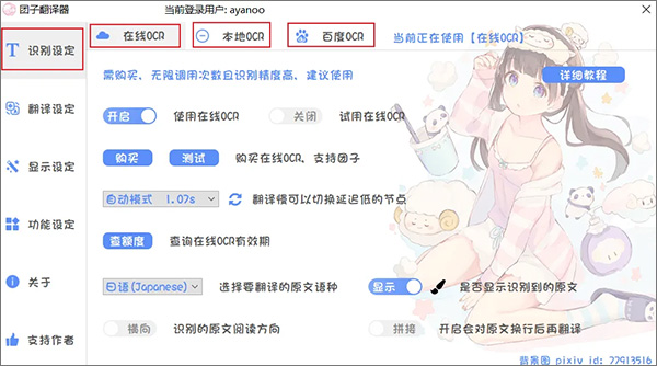 1、ocr是指将屏幕上显示的 日文/英文/韩文/俄文 进行识别,提取文本,再配合下文的翻译源完成对 日文/英文/韩文 的翻译