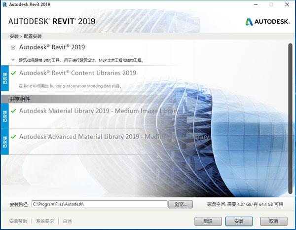 4、软件默认安装目录为【c:\program files\autodesk】用户可以自行更改,再勾选需要安装的软件点击下一步;