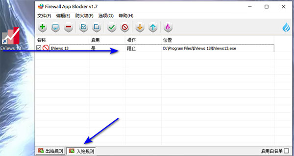 13、点击入站规则 在把软件拖到界面 显示阻止;
