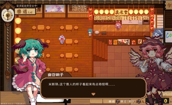 2、你扮演酒屋的老板娘米斯蒂娅,白天去幻想乡的各处收集食材,研究可口的料理;收集酒水,给客人们增加料理的兴致