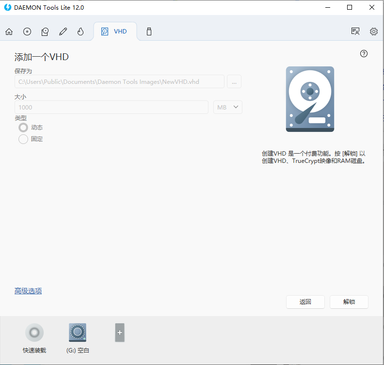 6、进入【VHD】界面,可添加VHD、TrueCrypt映像、RAM磁盘、VeraCrypt file等,