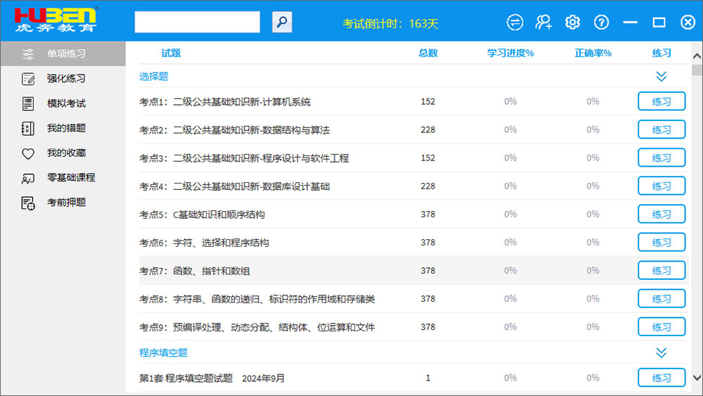 3、可以选择自己需要参加的考试内容学习对应的题目
