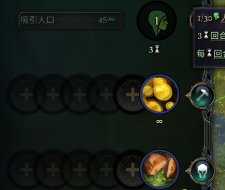 选拔:影响单位建造速度,没有进行单位招募时可以将选拔转化为食物。