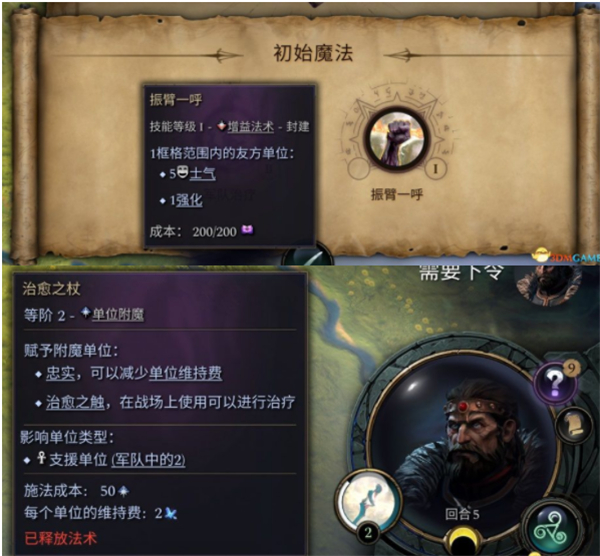 玩家也可以点击头像旁的魔法按钮施放魔法,一般从第二回合开始可以施放魔法。
