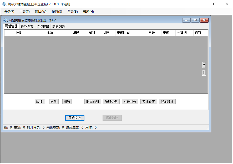 1、关键词监控批网站出现含关键词的资讯链接时报警,不重复报警。