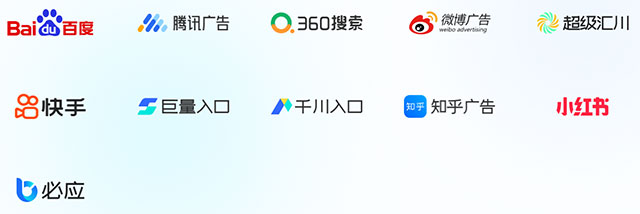 支持百度,腾讯广告,360搜索,微博,快手,知乎,小红书等。
