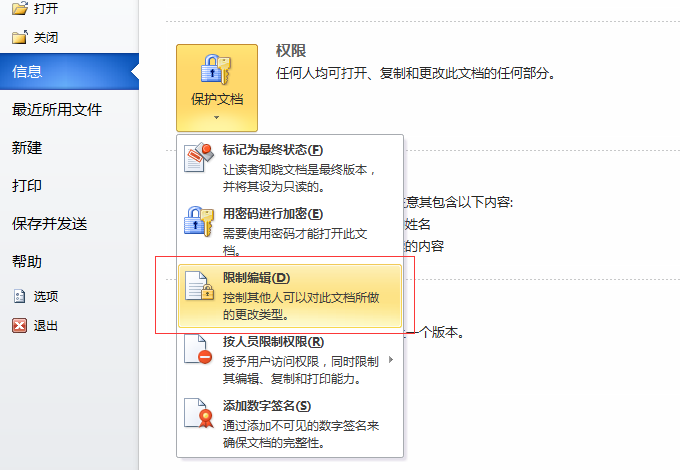 1.设置Word 2010的保护密码
