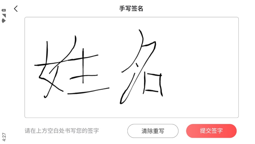 3、 在空白书写区域手写签名,若书写不满意,可点击"清除重写"重新绘制;