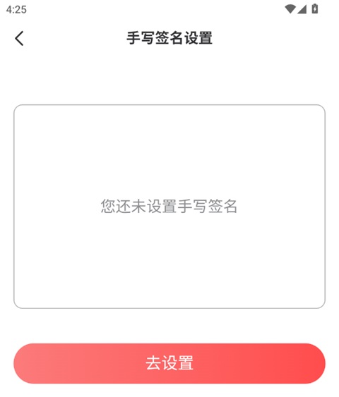 2、 点击页面中的"去设置"按钮,进入手写签名绘制界面;