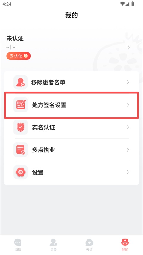 石榴云医医生版APP处方手写签名设置方法