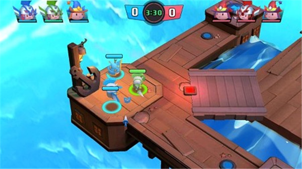 游戏里的玩法很简单,就是玩家操作自己的角色,和另外两个队友一起合作,用技能击败敌人。在限定时间内击败敌人次数多的一方就能赢。游戏的画风是卡通风格,看起来很有趣,而且玩起来也很轻松。