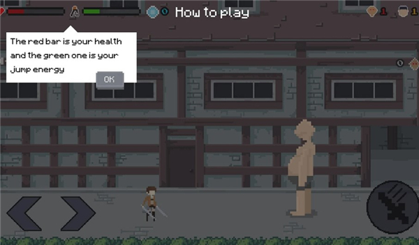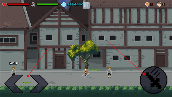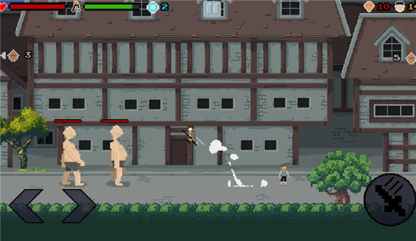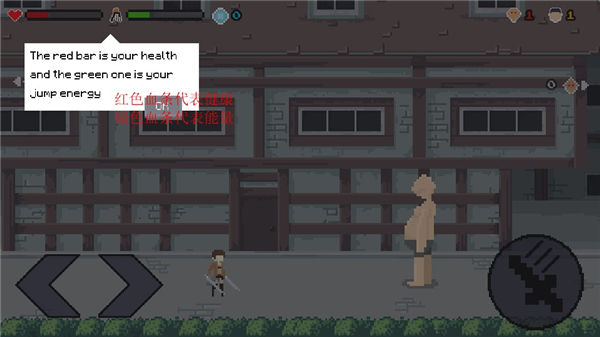 8、左边的按钮可以控制角色左右移动,右边的按钮可以控制角色进行攻击。