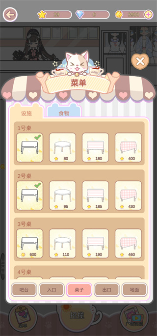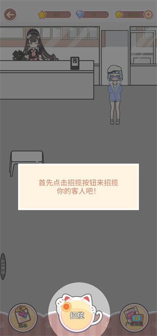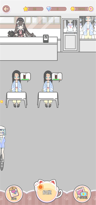 4、弄完房间可以回到主页,然后进入咖啡馆,开始营业招揽客人。