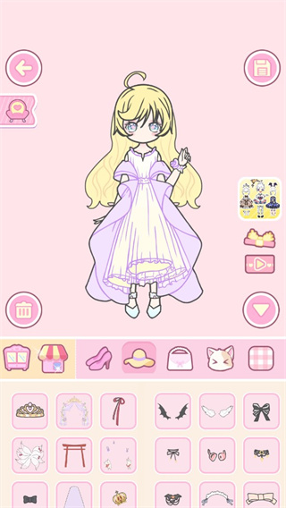1、自由更换穿衣物品,实现高度自由,随心所欲,制作头像,保存到相册。2、每周更新高级服装,提前知道预告。出色的动画效果为娃娃增添了更多的魅力。