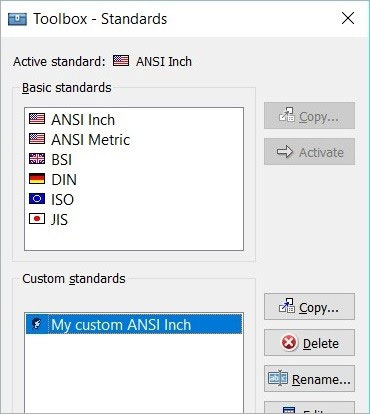 作为第一步,您应该考虑为您的项目选择标准机械。ARES Mechanical支持国际标准,例如ANSI英制、ANSI公制、BSI、DIN、ISO和JIS.所选标准将改变您的图纸在样式、图层、框架和零件库方面的预设值。