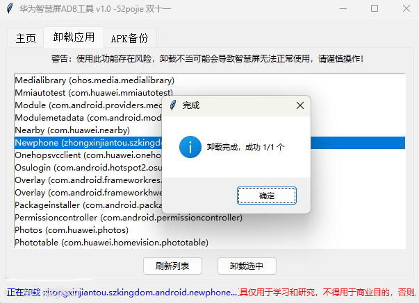 5、也可卸载智慧屏中的软件,使用此功能存在风险,卸载不当可能会导致智慧屏无法正常使用,请谨慎操作!