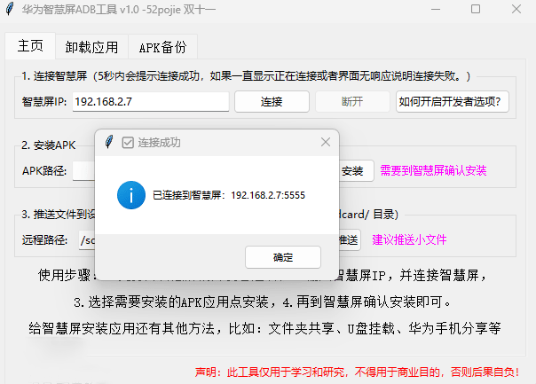 这篇文章主要介绍了华为智慧屏ADB工具的功能和使用方法。这款工具由吾爱论坛开发者开发,专门用于在华为智慧屏上安装第三方应用,比如音乐播放器、影视软件和K歌娱乐等。它还支持卸载、备份和推送APK文件等功能,操作简单直观,适合普通用户使用。