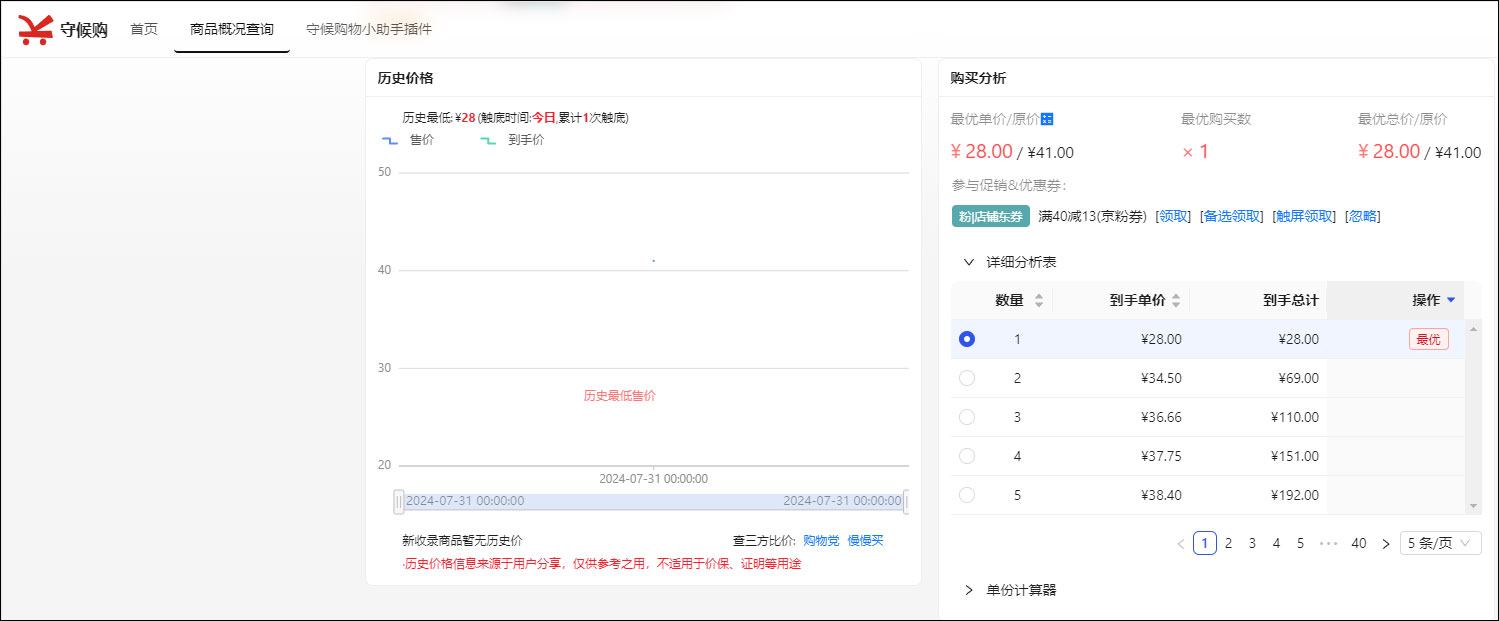 商品历史价快速查询,直观展示,智能分析(暂只支持京东)