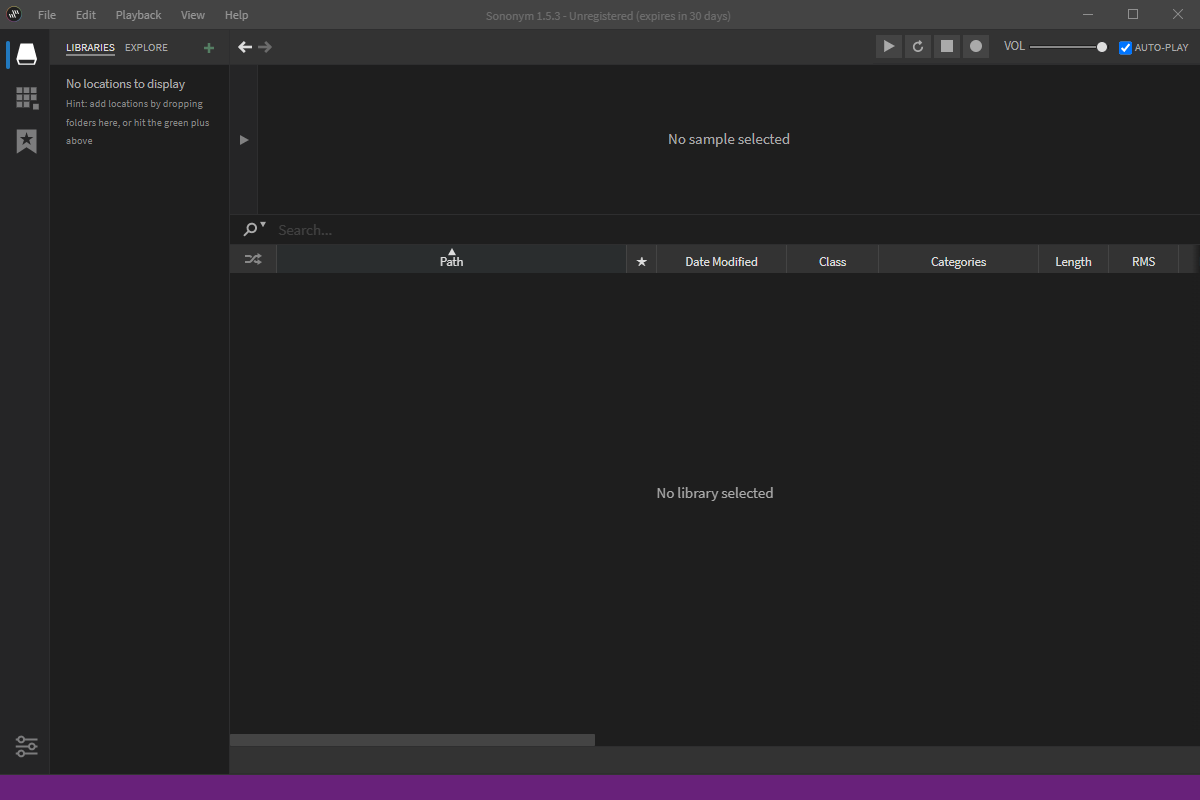 在分析样本时,该软件使用机器学习对内容进行分类。Sononym中的默认类别集广泛地基于电子音乐制作,并描述独特的声音组,如“军鼓”或“合成垫”。此外,所有声音都被分类为循环或非循环(一次性)声音。