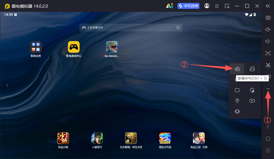 雷电模拟器的右侧功能栏中自带 “安装” 选项,通过这个功能既能实现手机传游戏,也能完成电脑本地文件导入,灵活性极高。