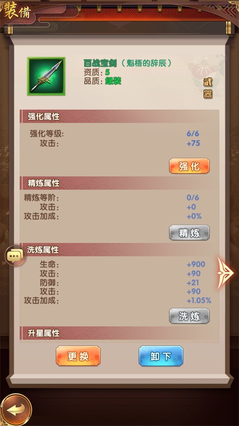 同时,装备可以镶嵌宝石、洗炼提升更好的属性。