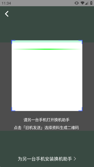 4、比如点击安卓手机之后,在安卓手机上选择新机接收并扫描二维码。